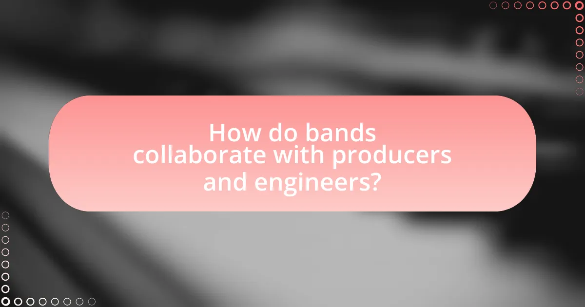 Bands collaborate with producers and engineers by engaging in a structured process that involves communication, creative input, and technical expertise. During pre-production, bands discuss their vision and goals with producers, who help shape the sound and direction of the album. Producers often provide guidance on song arrangements, instrumentation, and overall production techniques, while engineers focus on capturing high-quality recordings and mixing the final tracks. This collaboration is essential, as it combines the artistic vision of the band with the technical skills of the producers and engineers, resulting in a polished final product. For instance, the collaboration between bands like The Beatles and producer George Martin led to innovative recording techniques that defined their sound and influenced the music industry.